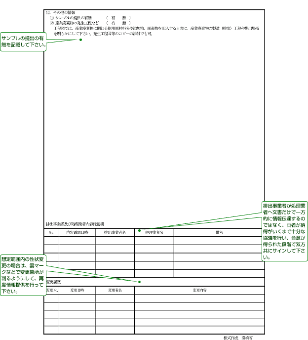 廃棄物データシートは廃棄物の品質を明示するもので排出事業者が作成します。